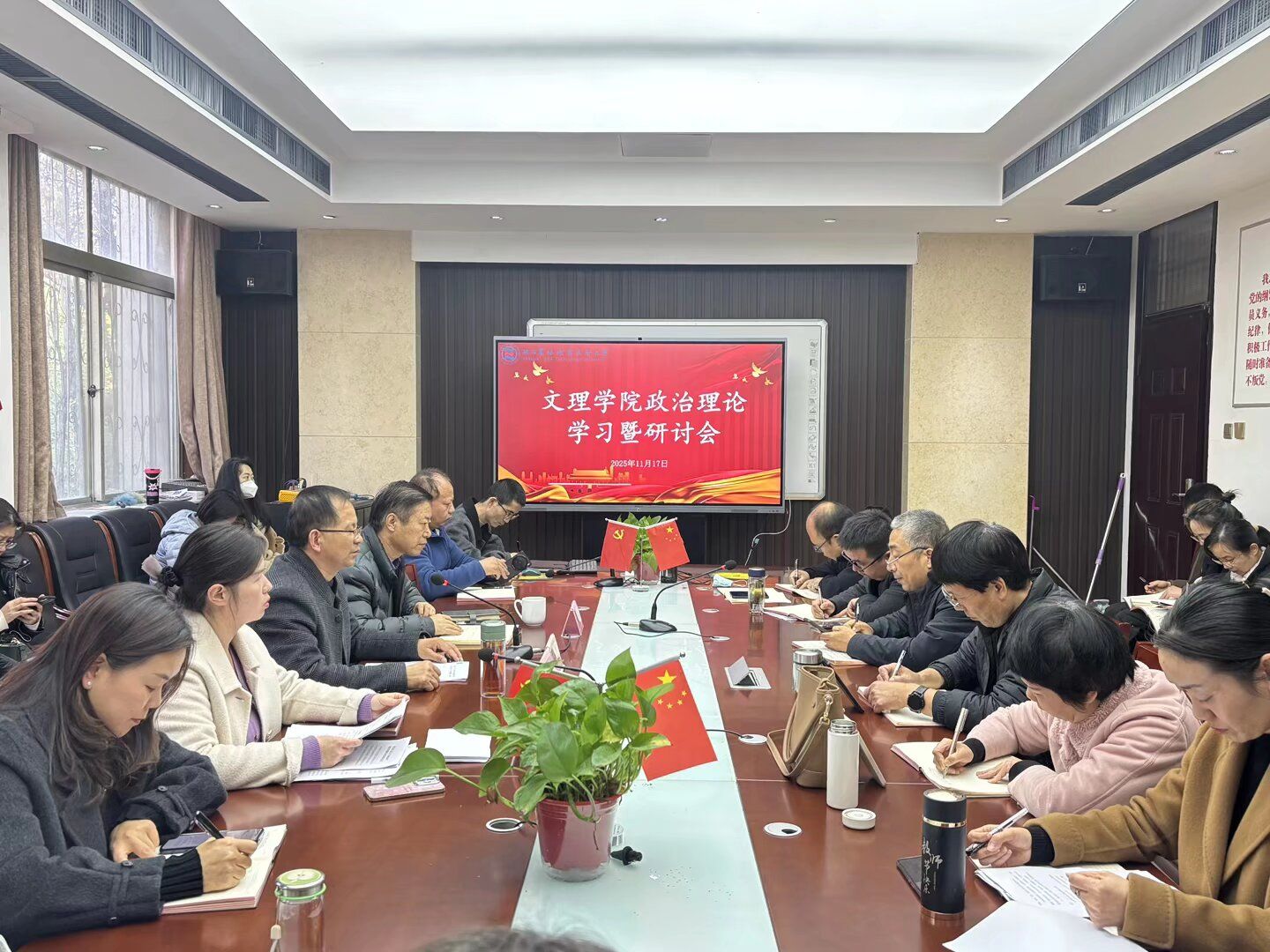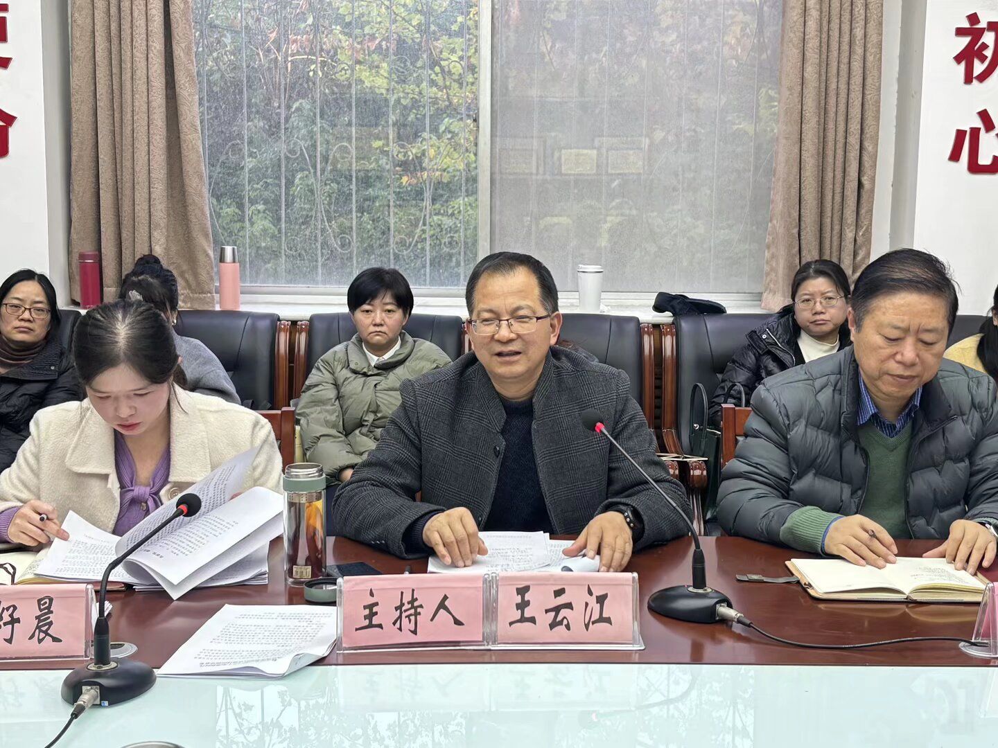 11月17日下午,文理学院在会议室召开全体教职工大会,会议分为政治理论学习和期中教学检查动员两个阶段。会议由院长王云江主持,全体教职工参加。