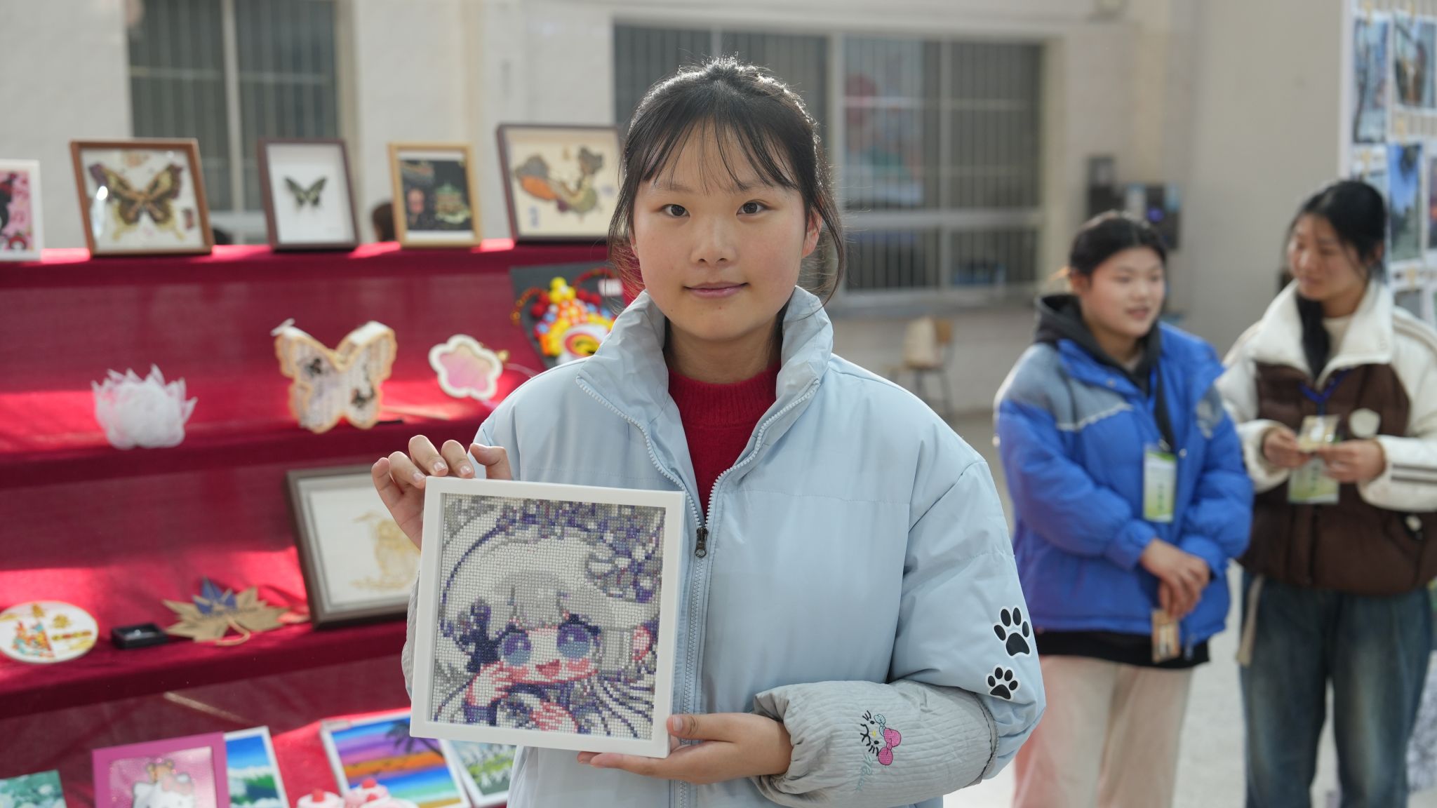 活动现场氛围热烈,展区布局精巧有序,本次展览共征集到学生美育作品300余件,分为精品展示区、手工织艺区、立体手工区、书法绘画区四大特色展区,集中呈现了全校学生在美育实践教学中的丰硕成果。手工织艺区内,涵盖编织、刺绣等多个门类,各类创意织艺作品以其浓郁的文化底蕴、精巧的手工技艺和鲜活的创意表达,吸引了大批师生驻足观赏;立体手工区里,利用废旧材料创作的景观模型、文创摆件创意十足,彰显了环保理念与艺术创意的融合;书法绘画区中,楷书、行书、素描等作品笔墨淋漓、色彩斑斓,既有传统韵味又具时代气息,水彩画、剪纸、素描等作品构思巧妙,或描绘田园风光,或展现校园生活,尽显农林学子对自然与生活的热爱;精品展示区精选同学制作的精美作品,集中展现了学校美育教育的高水平成果。
