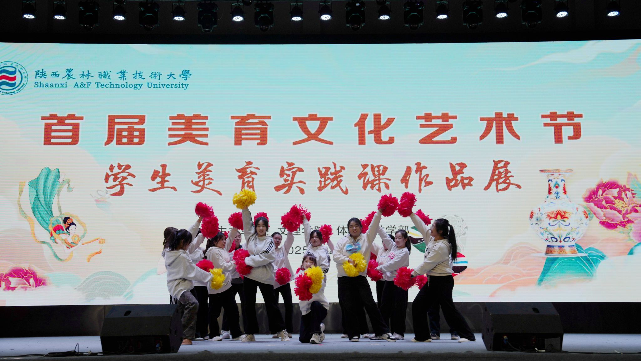 活动现场,体育课教学部展示的华尔兹舞蹈与啦啦操表演也为展会增添了青春活力。学生们身着整齐服装,舞步轻盈灵动、动作整齐划一,展现出昂扬向上的精神风貌,赢得了现场领导与师生的阵阵掌声。