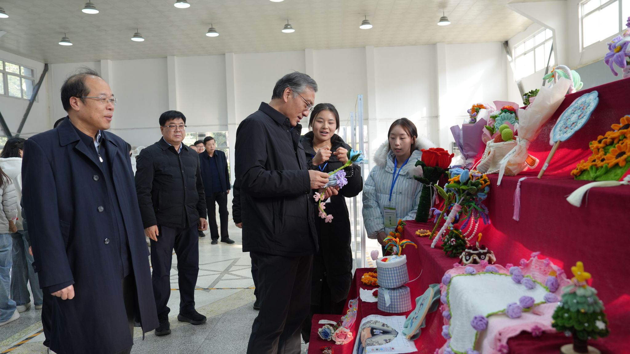参观过程中,校领导们仔细观赏每一件作品,不时与指导教师、参展学生亲切交流,详细询问作品的创作思路、材料选择与制作过程,对同学们在作品中展现出的想象力、创造力及扎实的艺术功底给予高度评价。