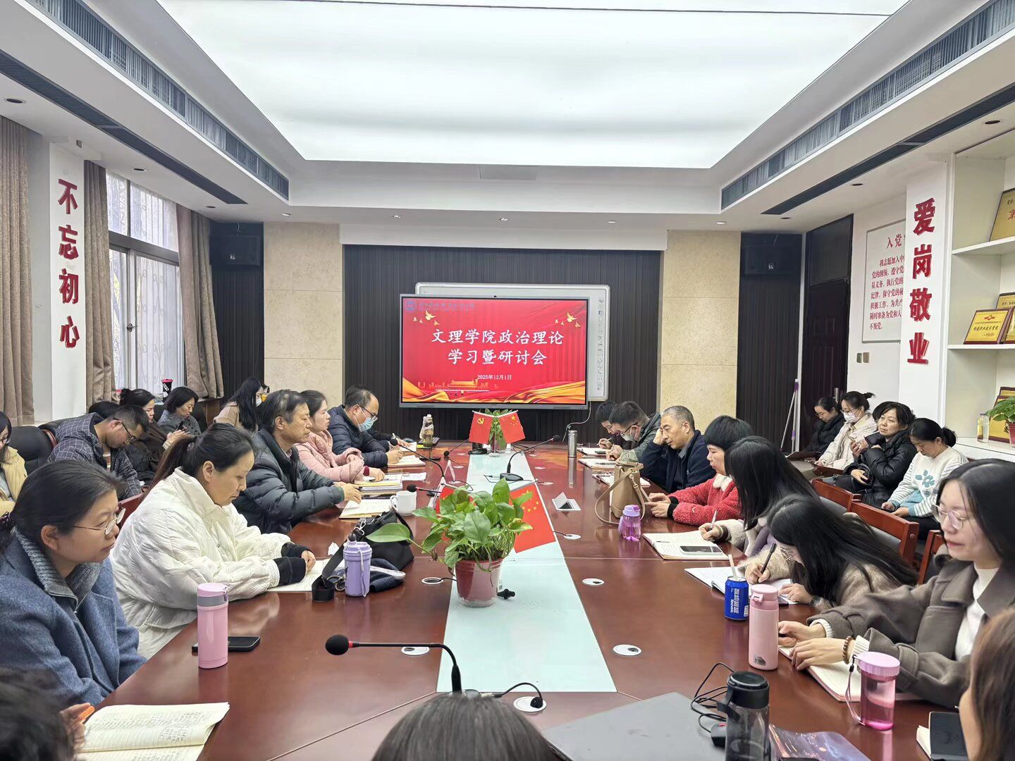 12月1日,文理学院在会议室召开政治理论学习研讨会暨期中教学检查总结大会,会议由副院长问建军主持,全体教师参会。