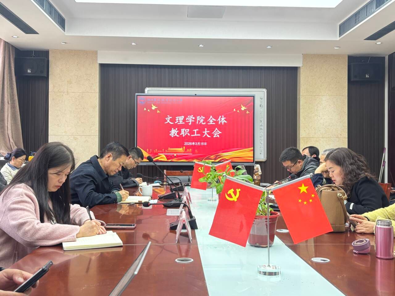 3月16日下午,文理学院召开职工大会,汇报教研室工作计划,会议由副院长问建军主持。